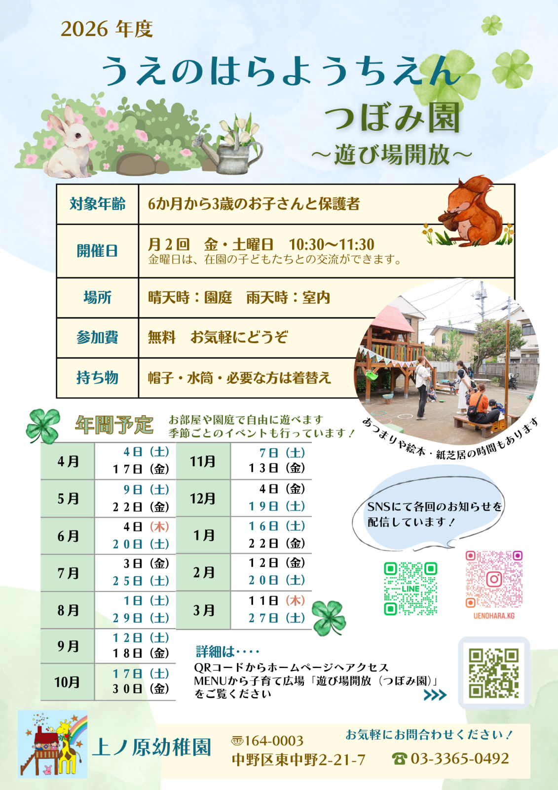 上ノ原幼稚園には、他にも、以下のような「子育て広場」があります。